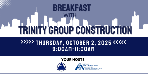 When: Thursday, October 2, 2025 | 9:00 AM - 11:00 AM Where: TRINITY Group Construction Office, 13849 Park Center Rd, Suite A, Herndon, VA 20171 Capacity: Limited to one representative per company Register Today